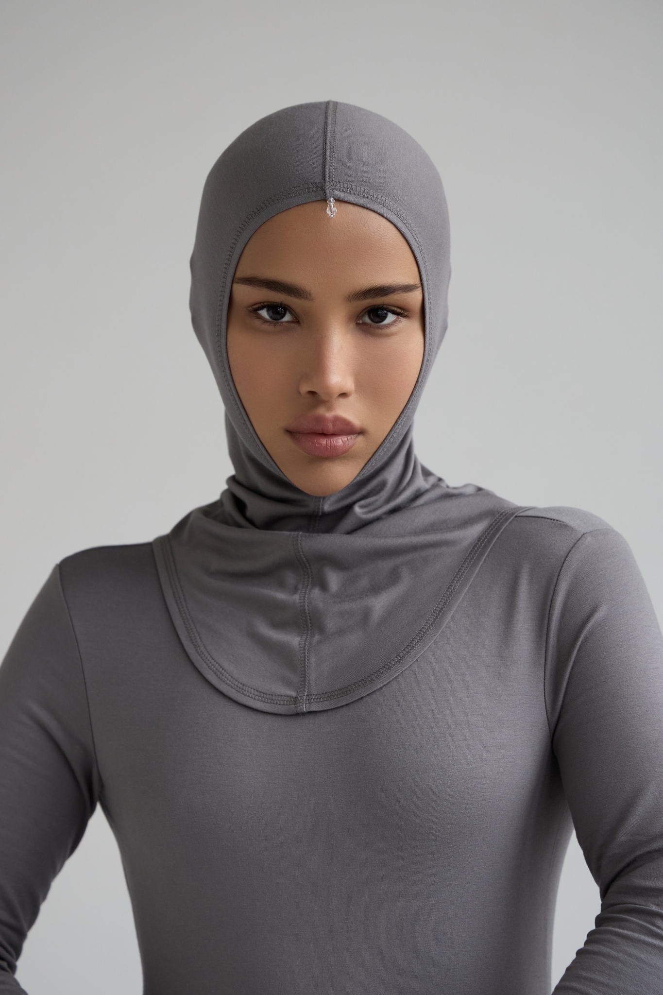 Балаклава с бусиной серая
