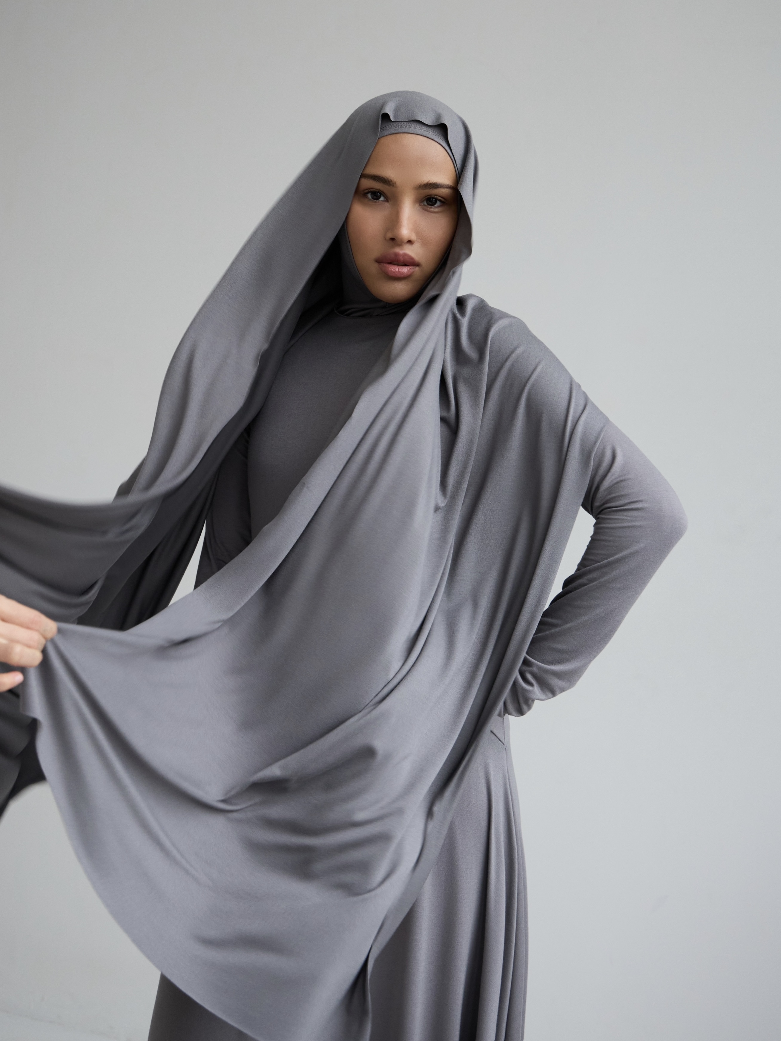 Шарф трикотажный серый
