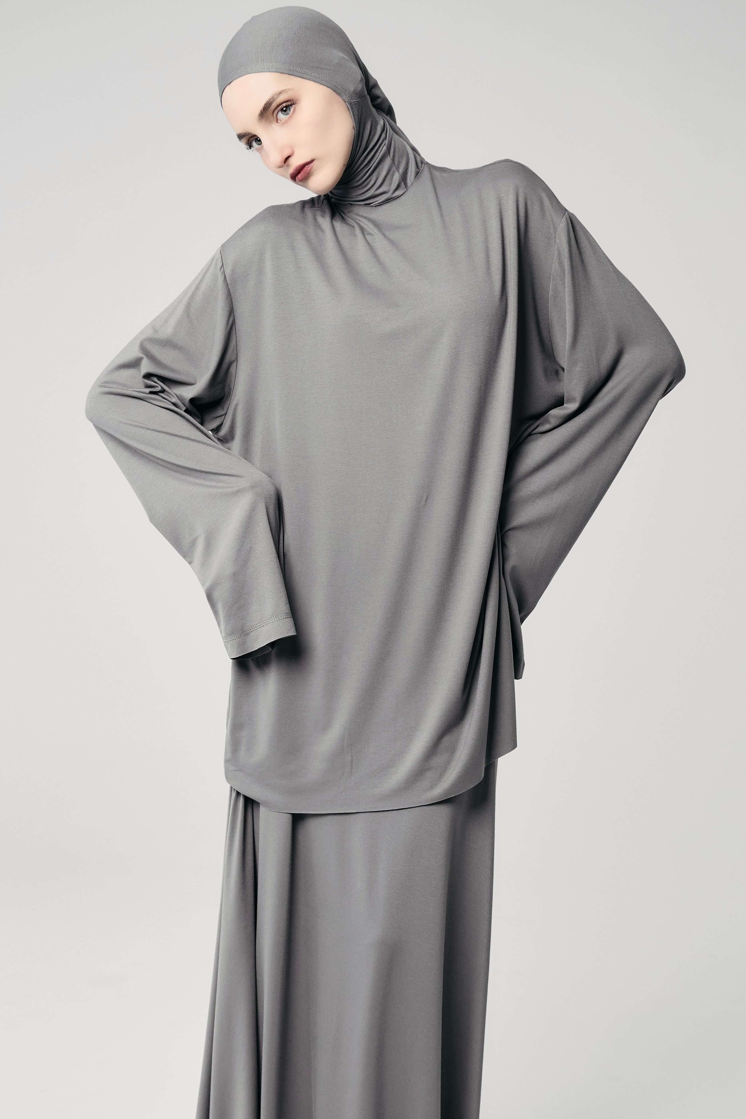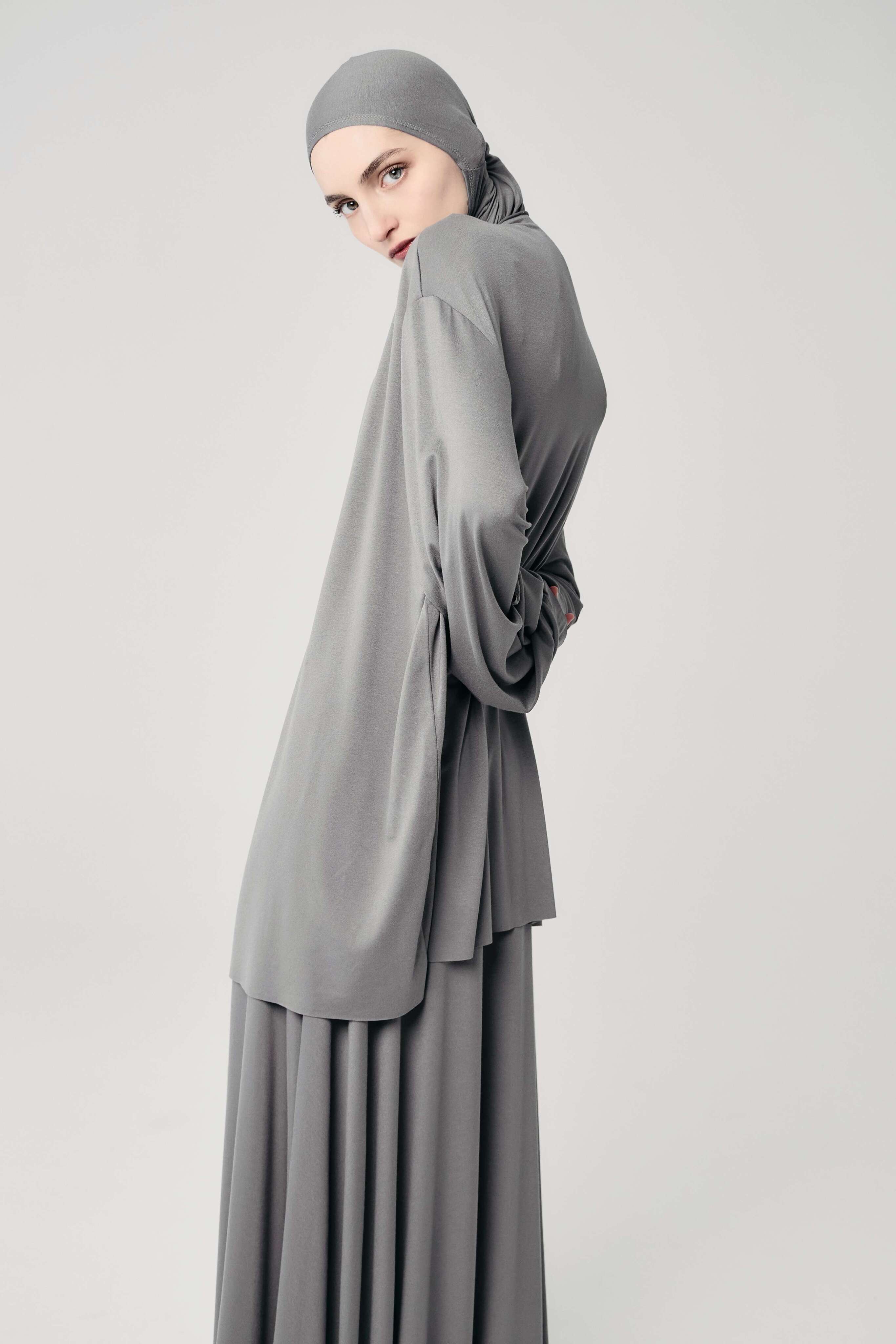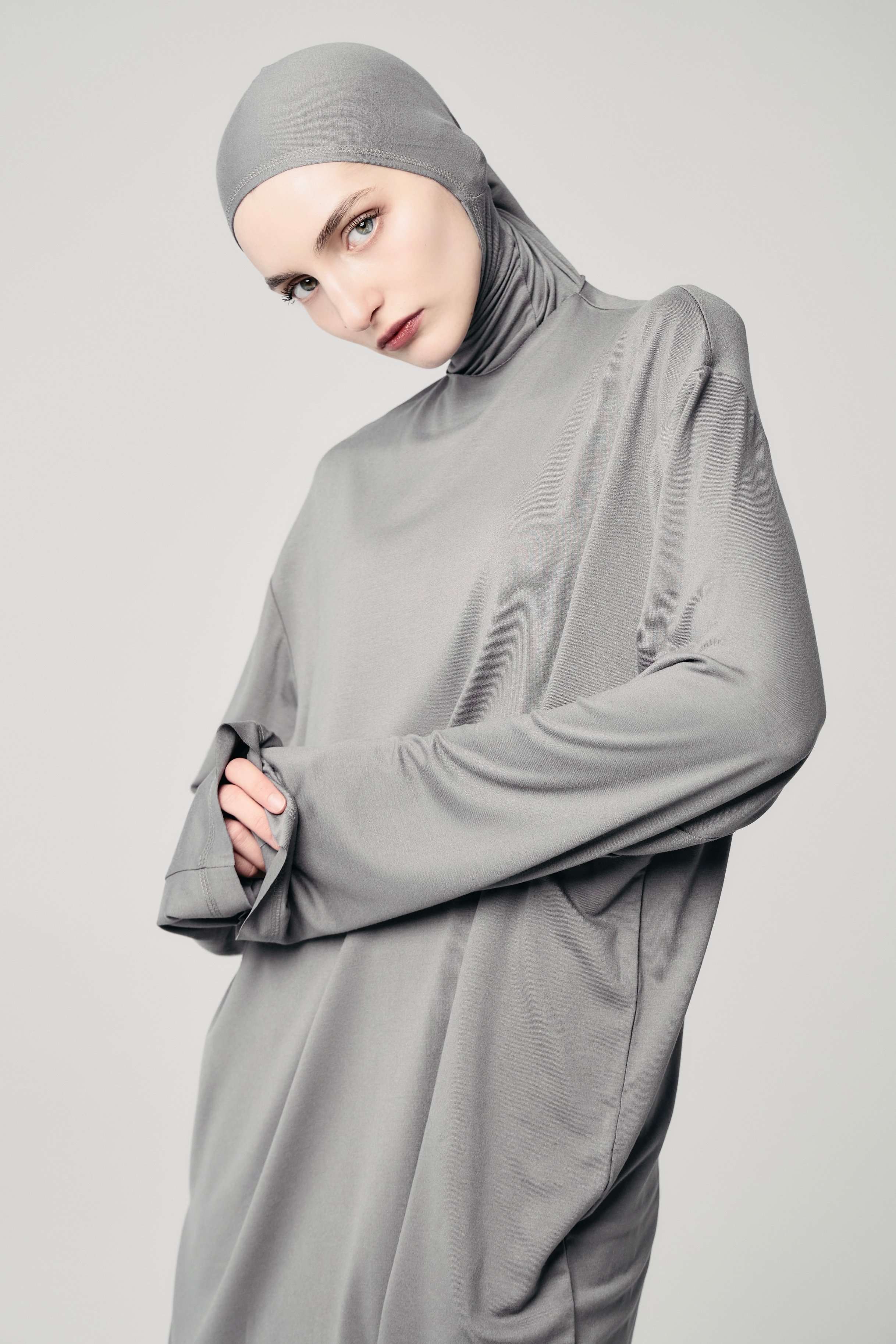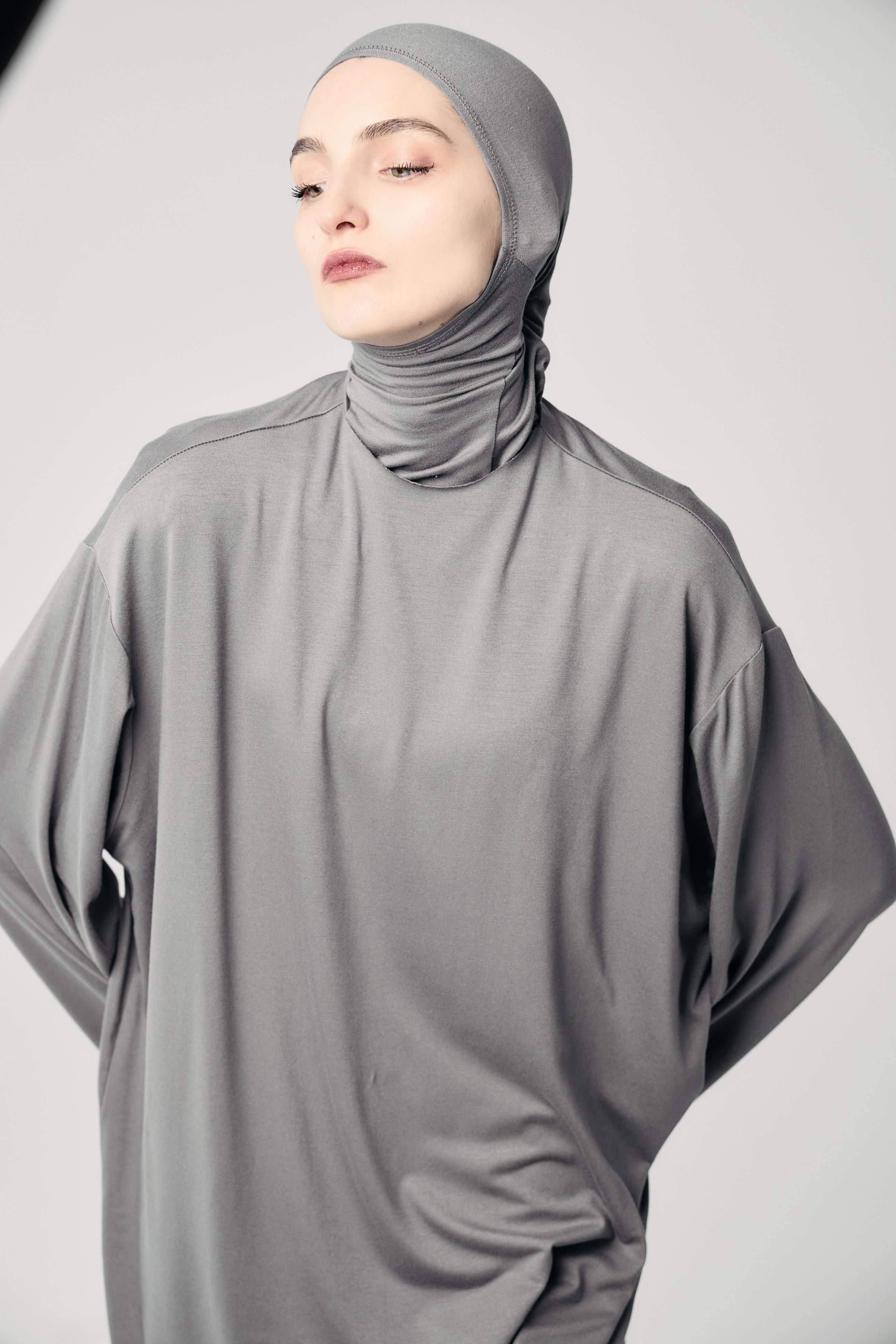Лонг база с капюшоном голубой