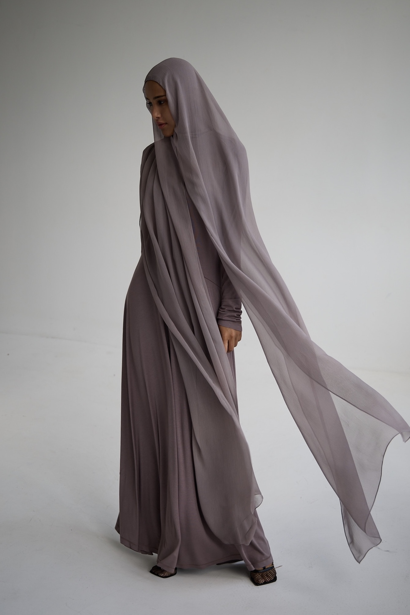 Шарф шелк жатый коричневый